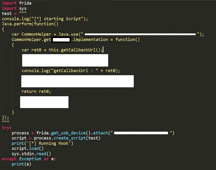 (2) process = frida.get_usb_device().attach("attach할 PID 명") 로 원하는 앱에 붙어 프로세스를 지정한다.